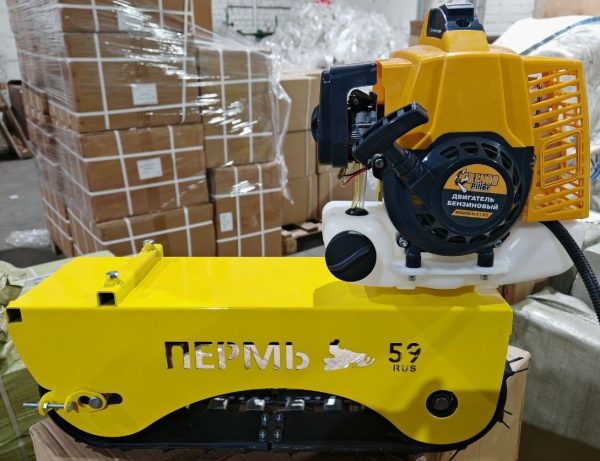 Приставка-мотор на гусеничном ходу для детского снегоката (гусеничный модуль) ручной старт. Производитель: г. Пермь. Модификация 2025 года. Двигатель двухтактный, 63см. куб (4,1 л.с.) Цвет: желтый