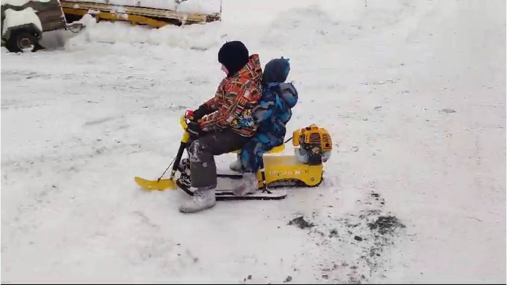 Присоединение модуля к снегокату: Модуль может подсоединяться к большинству типов детских снегокатов (аргомаков). На корпусе предусмотрено две точки крепления кронштейнов, и сами кронштейны имеют два варианта крепления хомутов. Но оптимальным считается, когда модуль находится под снегокатом, а высота сидения снегоката от уровня земли 38 см. При таких условиях, вес седока распределяется между лыжами и гусеницей модуля, обеспечивая лучшее сцепление со снегом. Подробнее...Снегокат высокий Ника Тимка Спорт Желтый+черный Топливная смесь для двигателя: Двигатель двухтактный, аналогичный двигателю триммера, 52см. куб (3,1 л.с.). Работает на смеси бензина марки 92 и двухтактного масла (пропорции: на 1л 92го бензина добавить 30гр 2Т масла, готовую смесь не хранить более недели). Подробнее...
